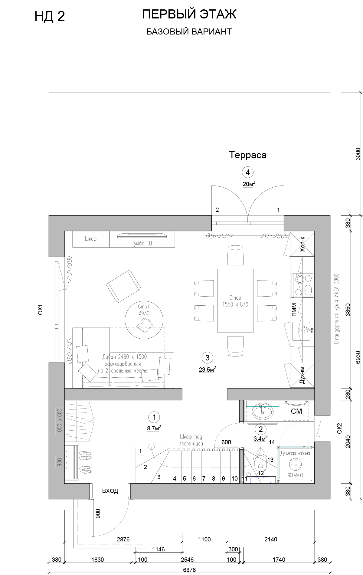 Материал – Поризованный кирпич + брус